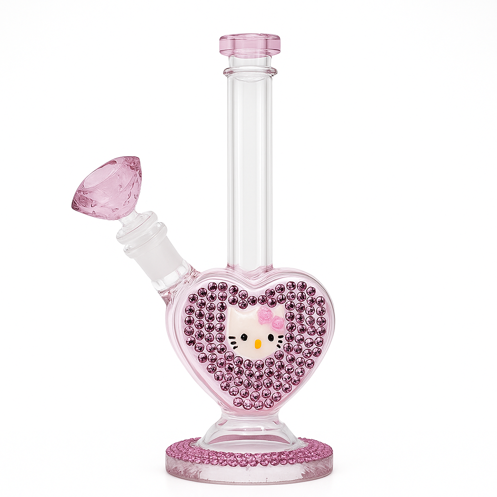The Kitty Heartbeam 10” Bling Waterpipe blends adorable charm with premium glasswork, featuring a sculpted heart-shaped base embedded with sparkling rhinestones and a centered Hello Kitty face. This collector-style piece pairs its ultra-cute aesthetic with a clean straight-tube function, a matching crystal-cut pink bowl, and a glossy pastel finish. Durable, decorative, and irresistibly photogenic, it’s the perfect kawaii statement piece that still delivers smooth daily performance.